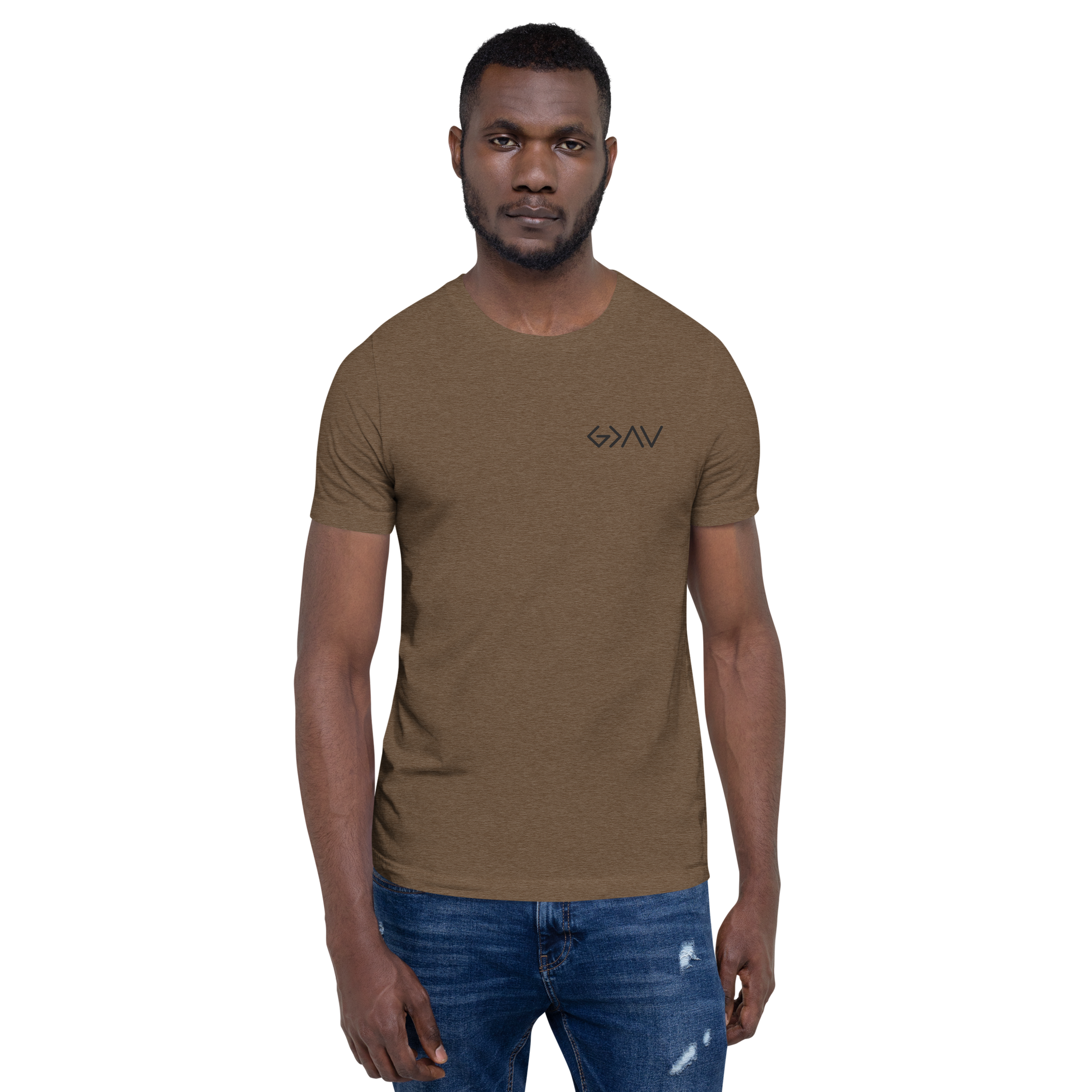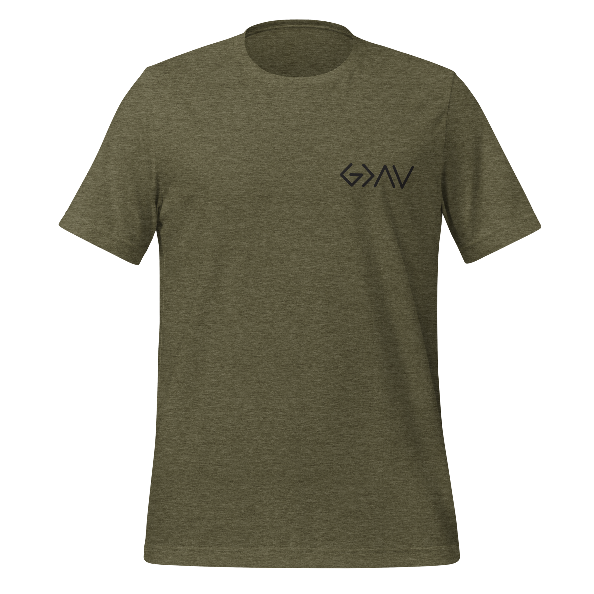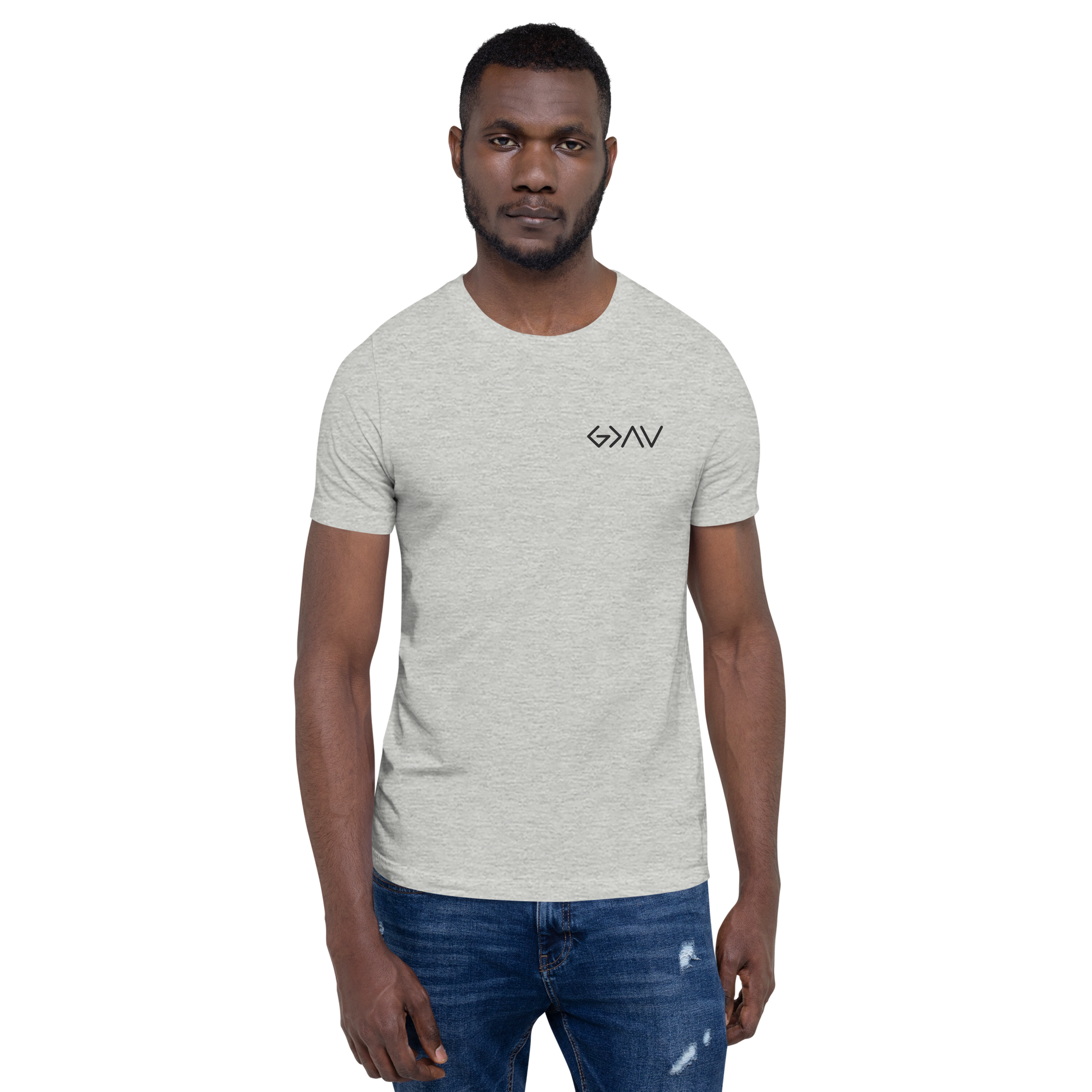 A minimalist “God is Greater than the highs and lows” design on a clean, everyday men’s tee. It’s soft, lightweight, and easy to pair with jeans, joggers, or shorts.